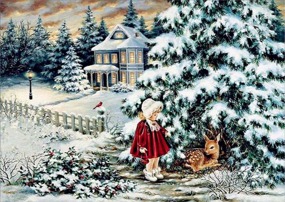 Little Girl and Elk | Full Circle Diamond Painting Kit